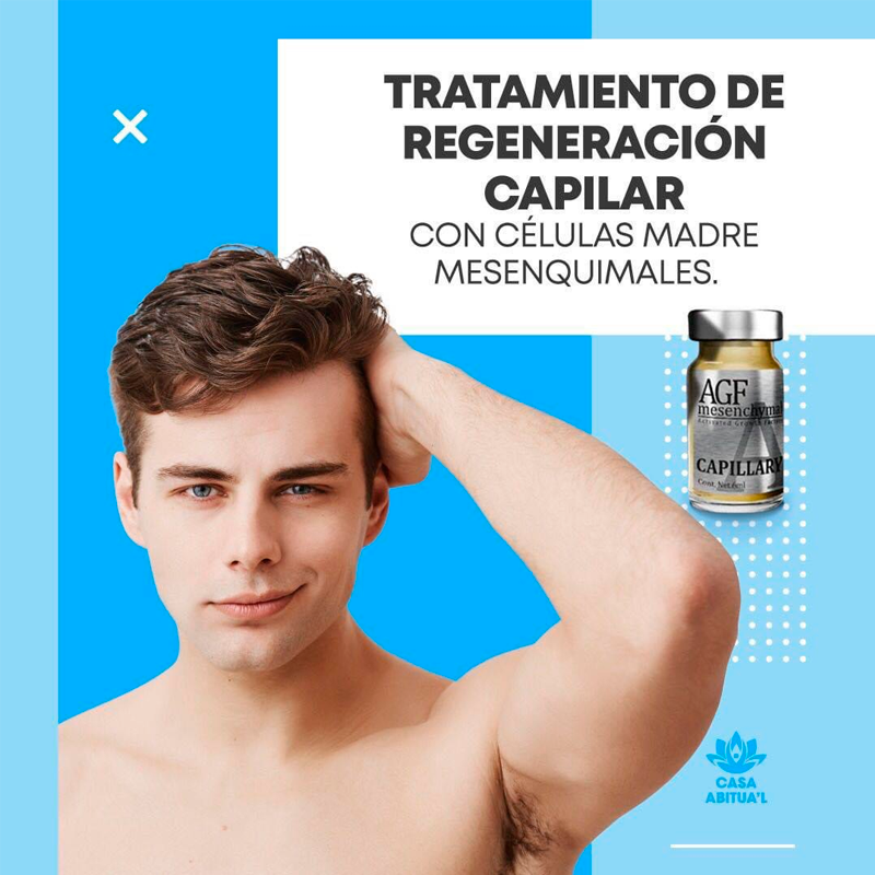 Contrarresta la caída y estimula el crecimiento de nuevo cabello, su combinación de un gran número de (proteínas factores de crecimiento secretados por cultivos de células madre mesenquimales) y exosomas, aumentan la oxigenación de las células, nutriendo y fortaleciendo el folículo piloso.🔥